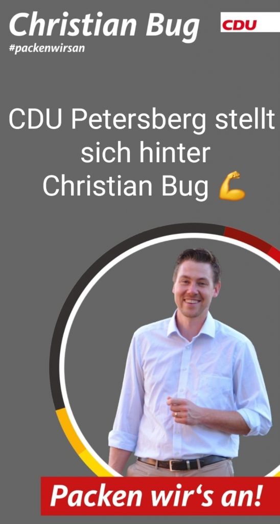 Christian Bug ist hier im Wahlkreis verwurzelt. Er kennt die Menschen und hat auf lokaler Ebene bewiesen, dass er das politische Geschäft beherrscht. Mit ihm gewänne der Wahlkreis einen dynamischen aber gleichzeitig bodenständigen Abgeordneten, der den Belangen unserer Region in Wiesbaden Gehör verschafft und – da bin ich mir sicher – engagiert und fleißig arbeiten wird“, so Hartwig Blum, unser Vorsitzender des Gemeindeverbandes.